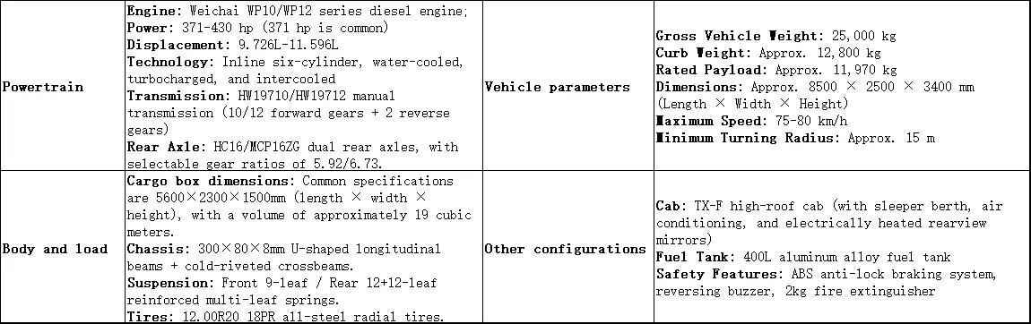 Tipo de vehículo: Camión volquete de construcción, adecuado para el transporte por camión volquete, la construcción de infraestructuras y otras aplicaciones similares.